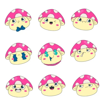 Kawaii Mushroom Sticker Vectors Cute Digital Graphics Pack