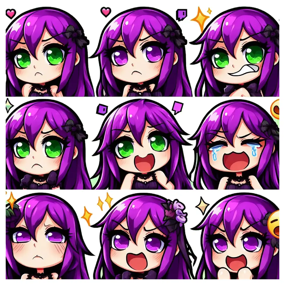 Each emote comes in high-quality PNG with a transparent background for effortless use in overlays, chats, and avatars.